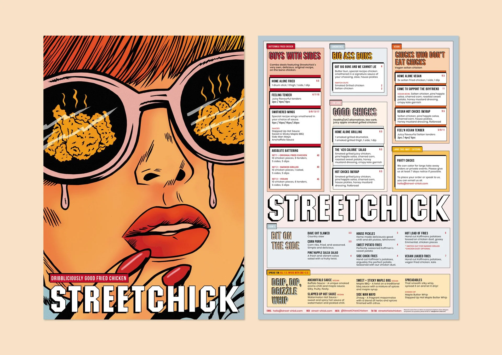 Street Chick aimed to disrupt an already saturated industry by offering a tongue-in-cheek, quirky and shock-factor concept. A health conscious grab-and-go spot for everything fried chicken, offering authentic Southern-style cooking with major contemporary twists on old-school classics; along with healthy alternatives offering gluten-free options and vegan ranges – revolutionising fried chicken and promoting interesting and healthier eating through good quality produce.